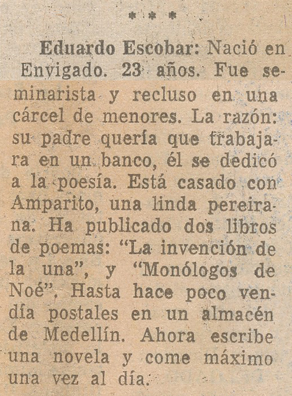 Entrevista a Eduardo Escobar por Óscar Dominguez G. para El Espectador, Abril 1, 2014