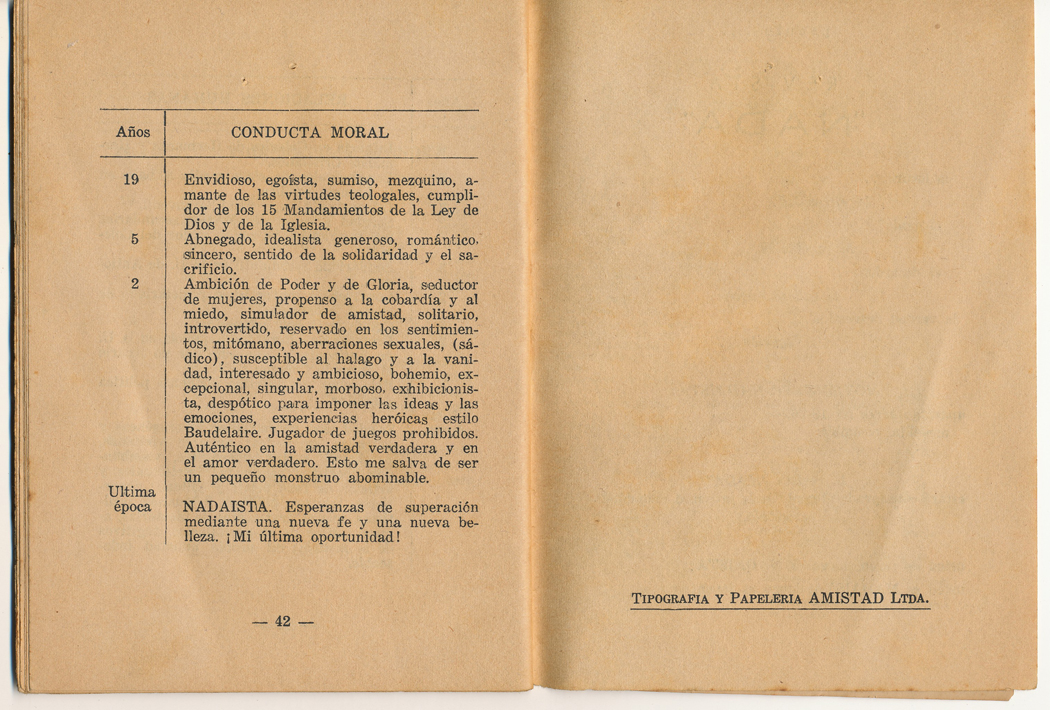 En las últimas páginas hay una sección donde Gonzalo, a sus 26 años de edad, hace lo que él llama: