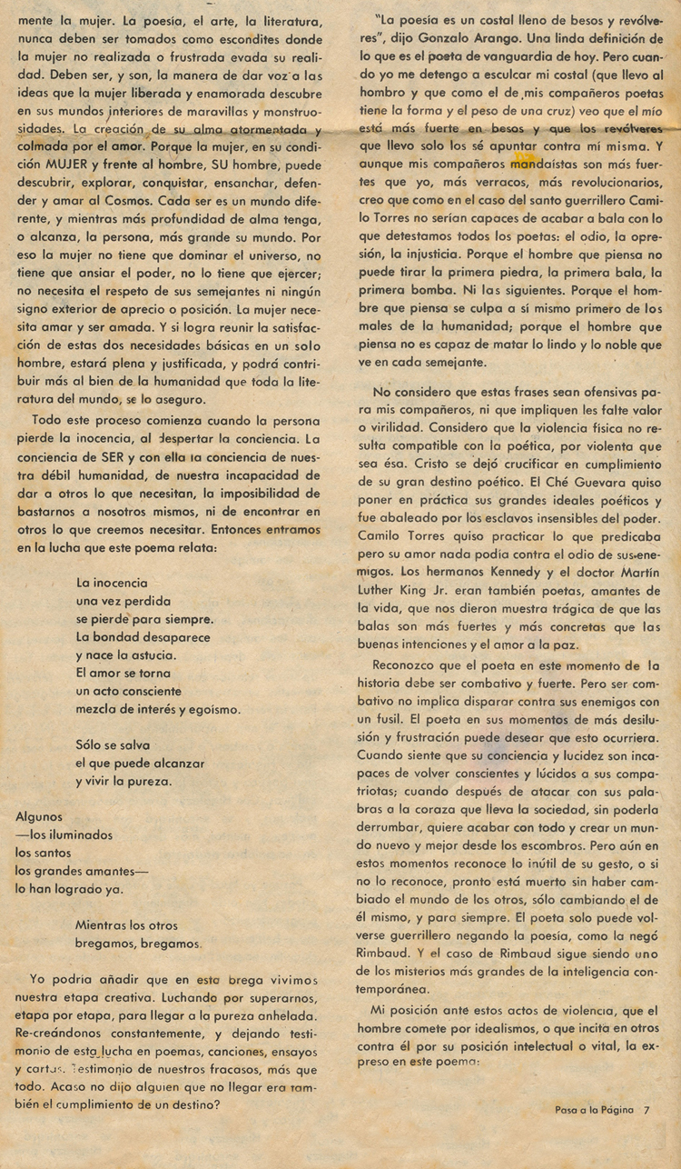 poema escrito por Gonzalo Arango para Rosa Girasol en el año de 1965