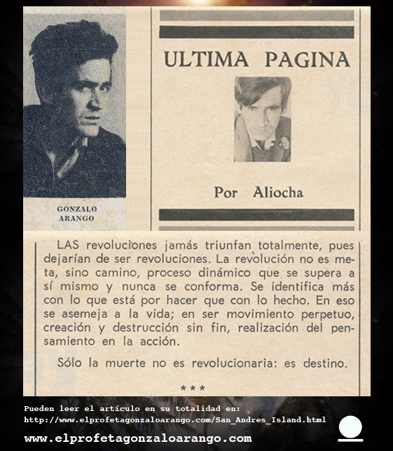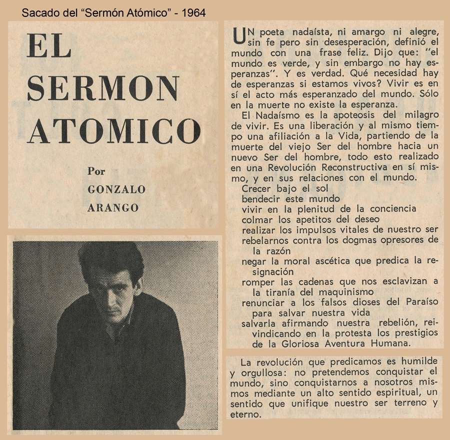 “Primera definición del Nadaismo (Julio8/58): El Nadaismo es una rebelión consciente de la juventud contra los estados pasivos del espíritu y la cultura”.
