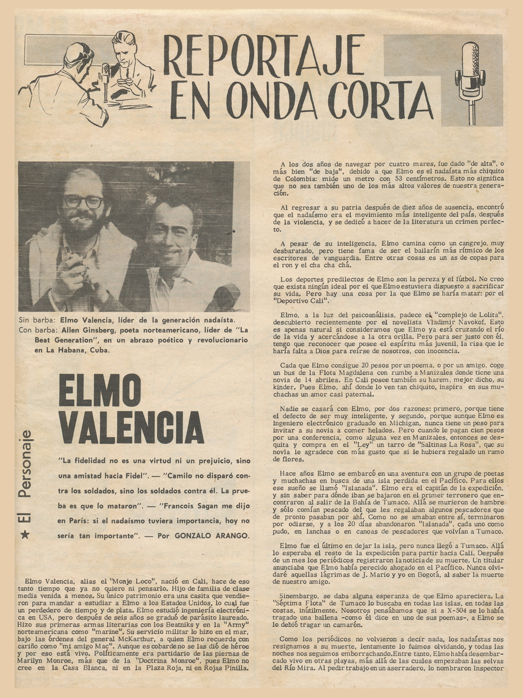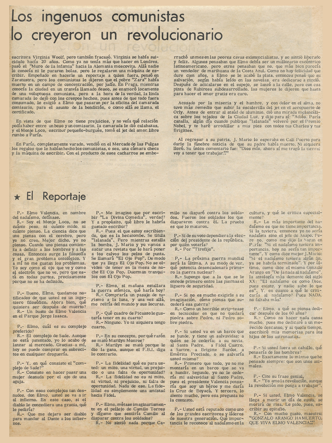 “Primera definición del Nadaismo (Julio8/58): El Nadaismo es una rebelión consciente de la juventud contra los estados pasivos del espíritu y la cultura”.