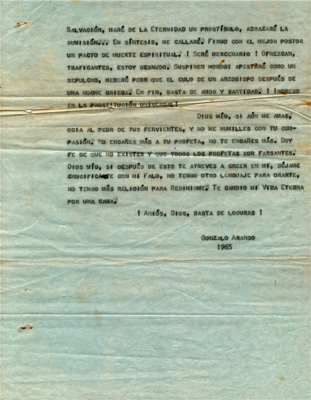 *Curiosamente, en la mayoría de sus cartas y documentos, Gonzalo no pone la fecha - este si la tiene. 1965.