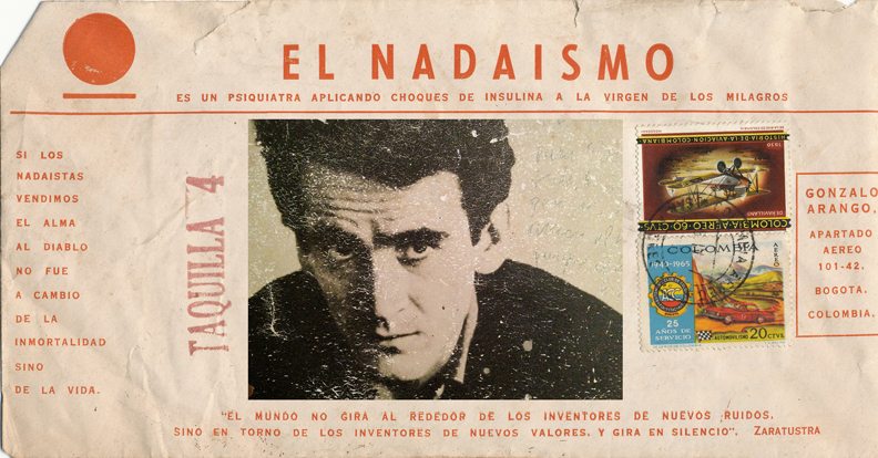 “Primera definición del Nadaismo (Julio8/58): El Nadaismo es una rebelión consciente de la juventud contra los estados pasivos del espíritu y la cultura”. Gonzalo Arango