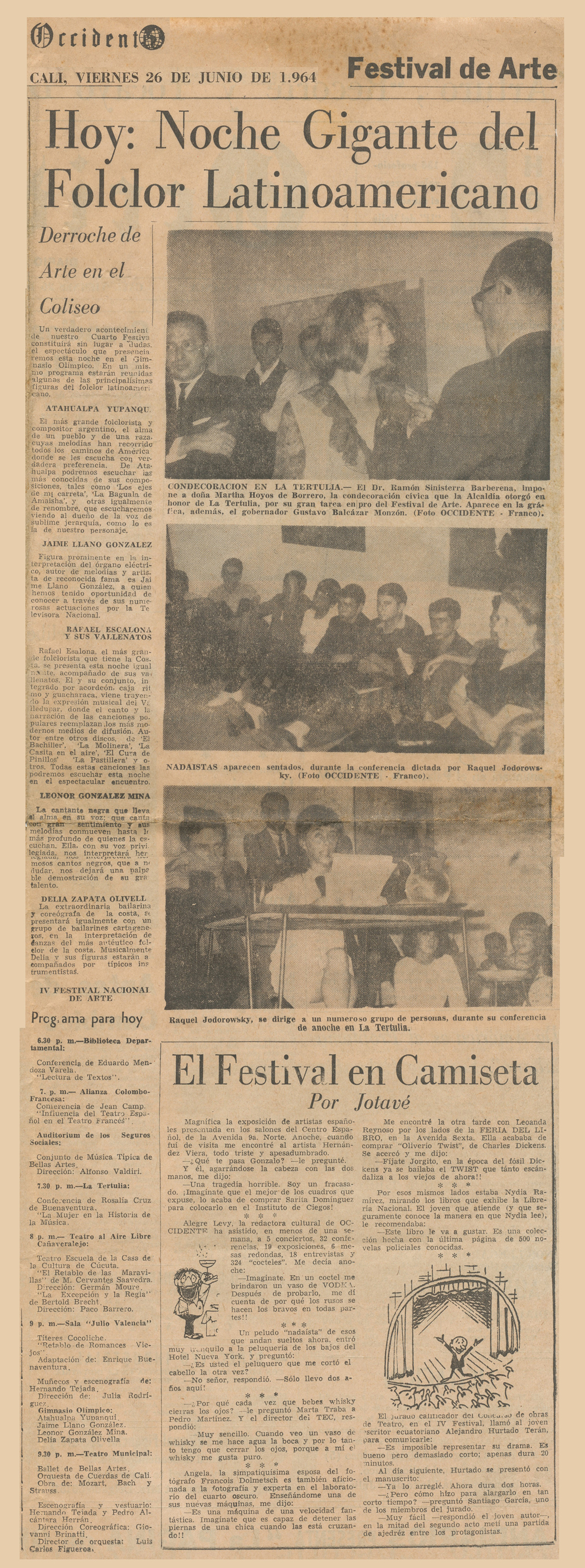 El IV festival Nacional de Arte en Cali, Junio, 1964